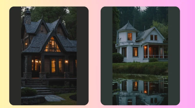 This house is like something out of a fairytale! It’s got a little tower, big windows, and a balcony that looks perfect for sipping hot cocoa and watching the sunset. You can practically imagine the warm fireplace crackling inside and the comfy couches waiting to be cuddled on. It’s like the perfect place to escape the hustle and bustle of everyday life.