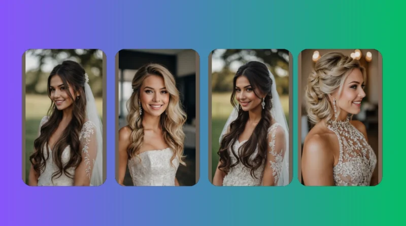 That half-up, half-down look is totally a winner, letting those shiny curls cascade over her shoulders while keeping everything neat enough for all those happy tears (and maybe a few clumsy dance moves later!). It totally brings out her gorgeous necklace and those sparkling earrings too, making the whole vibe super elegant but still fun. So if you’re planning a wedding for 2025, or just daydreaming about future glam, this style proves you can look like a total queen without needing a helmet of hairspray or worrying about a rogue strand deciding to go on an adventure mid-ceremony!