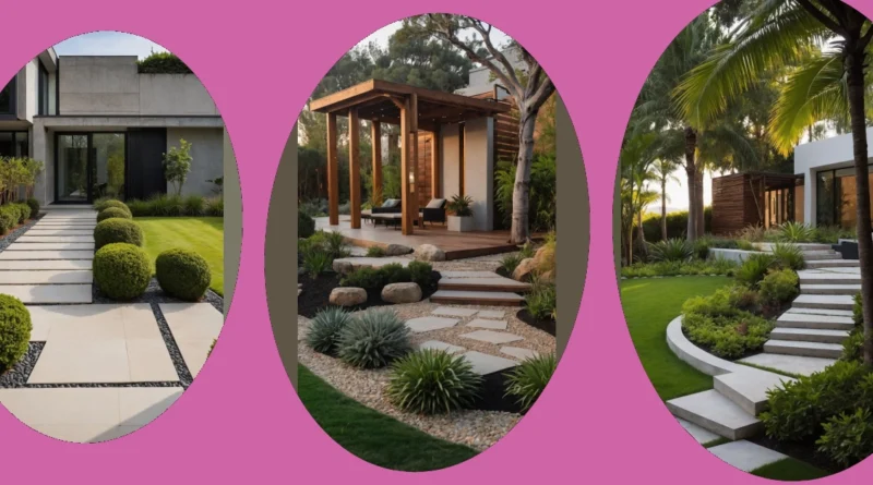 The house itself looks like it’s straight out of a futuristic movie, all sleek concrete and sharp lines, and the garden totally matches its vibe. I bet you’d need a special robot lawnmower to keep that grass looking so pristine, or maybe a team of miniature gardeners with tiny scissors! And the little black stones tucked between the path tiles? They’re so neatly placed, I wouldn’t be surprised if they had their own personal GPS. This isn’t just a ‘dream garden’; it’s a ‘don’t-even-think-about-touching-anything’ dream garden where even the leaves probably apologize for falling.