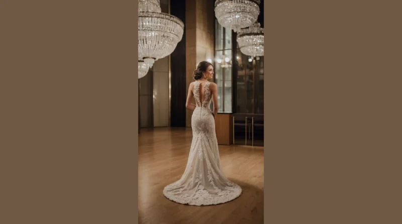 Seriously, who needs a prince when you have a dress this amazing? This isn’t just a dress; it’s a work of art! The delicate lace patterns are so beautiful, you’ll want to zoom in and examine every little detail. Plus, imagine the photos you could get – seriously, this dress practically poses itself! The way it flows and cascades down the stairs is picture-perfect; you could practically launch a thousand wedding Pinterest boards with just this one shot. So, if you’re looking for a dress that’s both breathtaking and effortlessly chic, this might just be your “happily ever after” in fabric form.