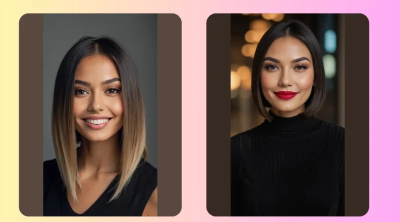 This picture shows a woman with a super chic bob hairstyle. It’s like a modern masterpiece, right? Her hair looks so soft and bouncy, you just want to run your fingers through it! It’s the perfect example of how a bob can be both sophisticated and playful – ready for a fancy Parisian cafe or a casual day out. Seriously, this bob is so good, it makes the Eiffel Tower look a little jealous.