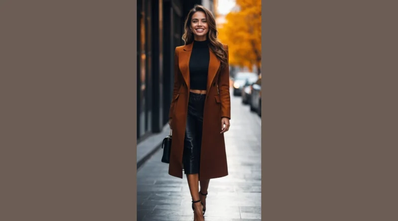 This girl is rocking a look that’s so stylish, it’s practically criminal! Okay, maybe not criminal, but you definitely wouldn’t want to mess with her. With her chic brown coat, black leather pants, and killer heels, she’s giving off serious “I’m a boss and I know it” vibes. Imagine yourself walking down the street like this – strutting with confidence and turning heads wherever you go!