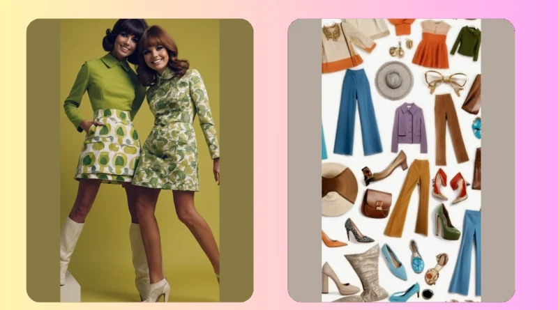 This image is like a time machine, taking you back to the groovy days of the 1960s! It’s filled with tons of cool clothes that would make even the coolest cat on the block jealous. You’ve got everything from bright orange mini-dresses that scream “let’s go dancing!” to bell-bottom pants that were practically the uniform of the day. And don’t even get us started on the amazing shoes! It’s a totally mod mashup of styles, colors, and textures that would make any fashionista want to break out their old-school shades and do a little “twist.”