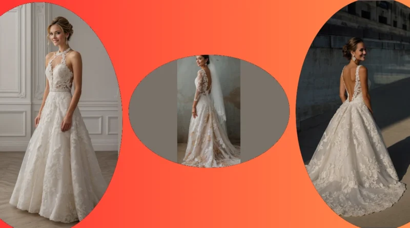 This bridal dress is seriously dreamy! It’s like a fairy tale come to life, all lace and delicate flowers. Imagine twirling around in this gorgeous gown – you’d be the center of attention, but in the best way possible. It’s the perfect blend of elegant and fun; you could totally rock this at a fancy wedding or a whimsical garden party. The back is especially cool; it shows just the right amount of skin, so you feel like a total queen.
