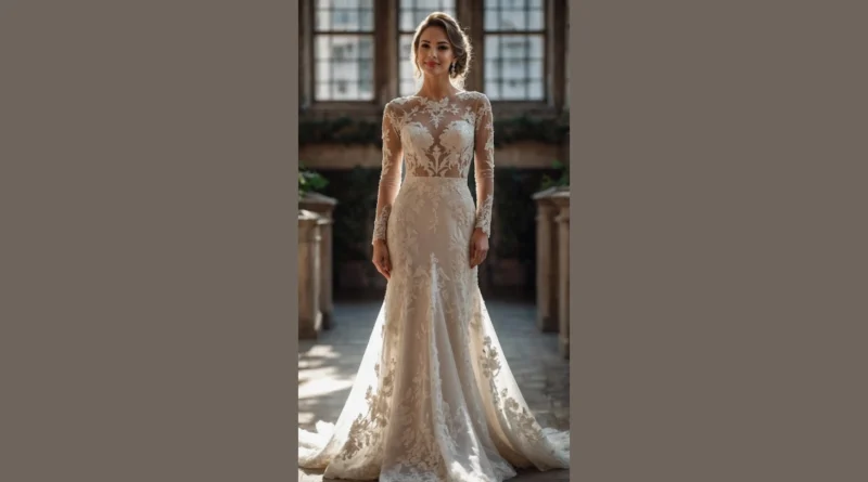 Holy moly, get a load of this dress! If you’re wondering what kind of magical gowns will be stealing the show in 2025, this one is basically a sneak peek into pure elegance. Those super detailed lace sleeves? They’re like fancy tattoos but on a wedding dress, totally giving off main character vibes without even trying. This gorgeous look is all about making jaws drop, but in a super friendly, “wow, you look amazing” kind of way, proving that long sleeves can be seriously stunning and not just for staying warm.