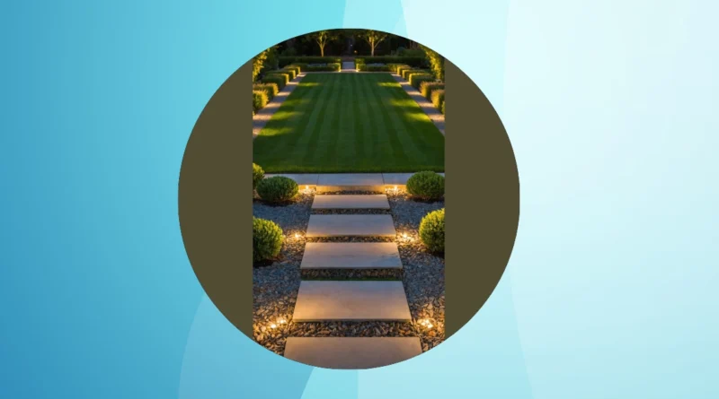 And check out those cool stepping stones leading up! They glow like tiny runway lights guiding you through this garden masterpiece at night. It’s like entering a secret level in a video game, except instead of finding treasure, you find… more perfectly trimmed bushes and super clean gravel. You can almost hear the neighbors whispering about how they just can’t keep their weeds away while this place looks ready for a magazine cover shoot every single night. Maybe they have tiny garden gnomes who do all the tidying up after everyone goes to bed, because keeping it this perfect seems like a full-time job.