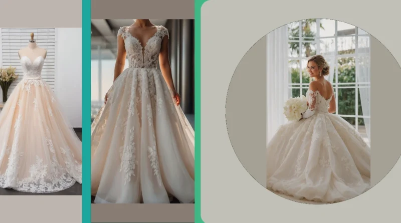 This dress is like if a regular wedding dress and a super romantic sunset had a baby. It’s got all the fancy lace and flowy fabric you’d expect, but the blush color makes it feel way more chill and less “cake topper.” Plus, can we talk about that waist? It’s cinched tighter than my jeans after Thanksgiving dinner, but in the best way possible.