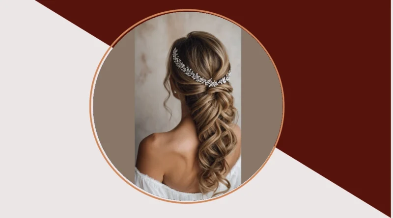 Planning your look for that big day, even if it’s way off in 2025, means looking at hairstyles that scream ‘wow!’ just like this one. Forget those stiff updos from your grandma’s photos; this style is all about effortless glam with those perfect loose waves tumbling down, making you look like you just stepped out of a fairy tale – or maybe just a really good salon. Plus, that sparkly leaf-like headpiece? It’s basically a crown without being *too* much, adding just the right amount of shimmer to catch every eye and make your hair sparkle more than your algebra teacher’s enthusiasm on a Monday.