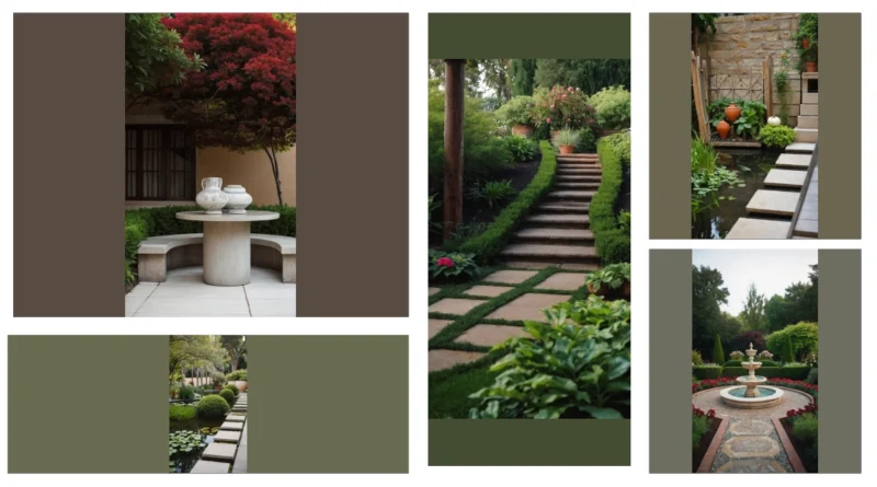 This garden looks like it’s straight out of a magazine! It’s got all the elements of a classy garden: perfectly manicured bushes, a calm pond with lily pads, and even a little stepping-stone path to wander through. You can just imagine sitting here with a good book on a sunny afternoon, listening to the birds singing and enjoying the peace and quiet.
