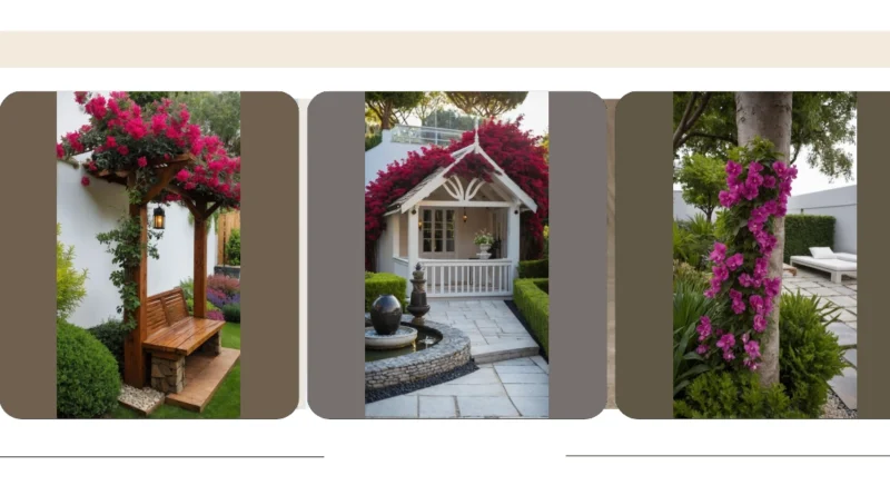 Check out this house that clearly decided it wasn’t just going to blend in with the background. It’s practically wearing a magnificent red shawl made of bougainvillea, making it look like it’s ready for a fancy garden party! Who needs boring walls when you can have a cascading waterfall of bright pink or red flowers? This isn’t just planting; it’s giving your building a fabulous floral makeover, proving that when it comes to outdoor gardens design, a little splash of color can turn a regular chill spot into a total showstopper.