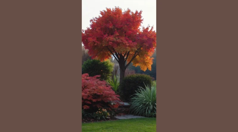 This picture is like a sneak peek into a magical garden, where autumn has painted everything in shades of red and orange. The leaves on the tree look like they’re on fire, and even the bushes around it are catching the flame. I bet the air smells like cinnamon and fallen leaves, and it’s the perfect place to jump into a pile of crispy leaves and yell “Fall is here!”