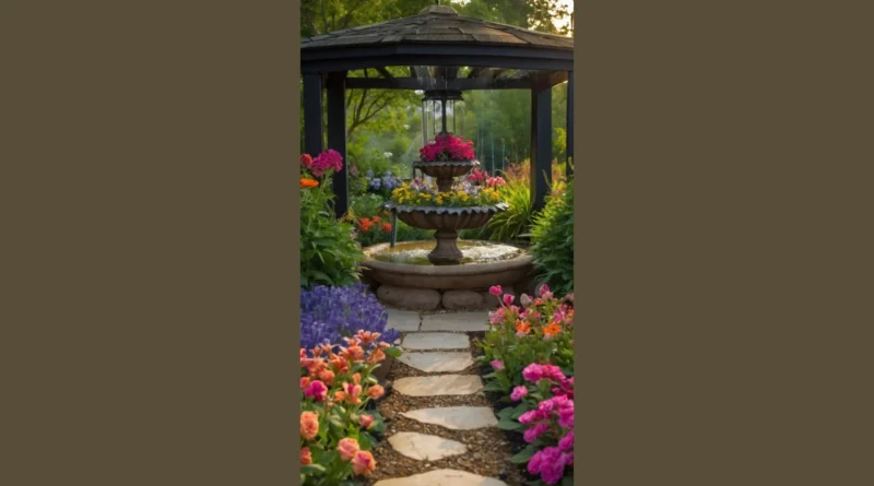 And speaking of stealing the show, that gazebo is looking pretty chill, acting like the ultimate VIP section for the whole flowery extravaganza. You could totally picture yourself grabbing a lemonade, grabbing a good book, and just relaxing while the little water show goes on, with all the pretty flowers doing their dazzling dance. It’s like a mini-vacation in your own backyard, or maybe someone else’s very fancy backyard.