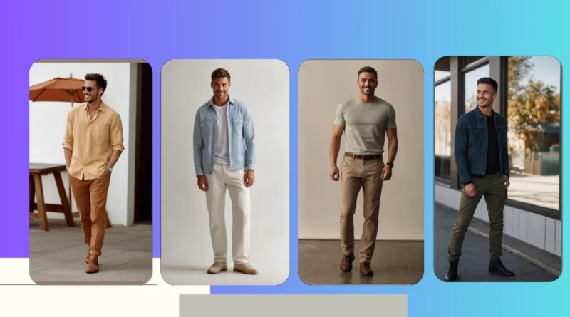 Finding a killer outfit for men doesn’t have to be harder than solving a Rubik’s cube blindfolded. Take a peek at this guy – he’s rocking the kind of pants outfit that screams, “Yeah, I look good, but also, I could totally help you move furniture right after this.” It’s that sweet spot between looking like you just rolled out of bed in sweatpants and trying too hard in a suit. This simple combo of a comfy tee and crisp khakis is basically the cheat code for looking effortlessly put-together, whether you’re heading to school, hanging with friends, or just trying to impress that one person who always notices your sneakers.
