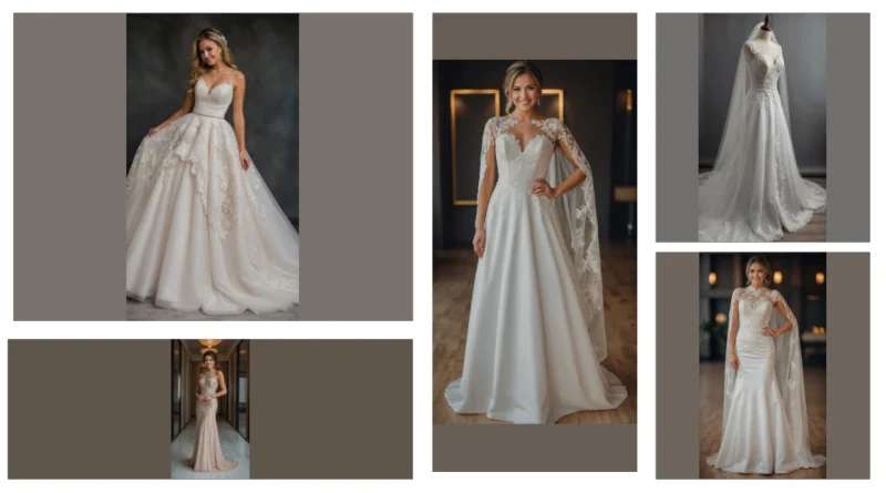 This bride absolutely crushed it in her white wedding dress! That flowing lace cape makes her look like she’s about to fly down the aisle, or maybe even solve a mystery before the vows. With all that gorgeous lace and the high neck, it’s pure elegance, and you just know she’s feeling like a total superstar ready for her big moment. She’s probably thinking, “Watch out, world, here comes the bride, and yes, my cape is this magnificent!”