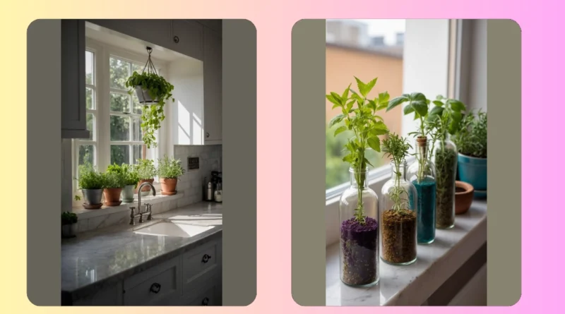 Check out these stylish little green buddies, hanging out in their cool glass bottles right on the windowsill! Indoor herb gardening doesn’t have to mean mud-stained clothes or giant garden plots. These tiny plants are basically living their best life, soaking up the sun and adding a super fresh vibe to your room. It’s like having a secret, fragrant superpower that makes your kitchen look way fancier, and honestly, even your most ‘plant-challenged’ friends might be able to keep these alive. They’re definitely winning the award for ‘Most Chill Roommate with Benefits’.