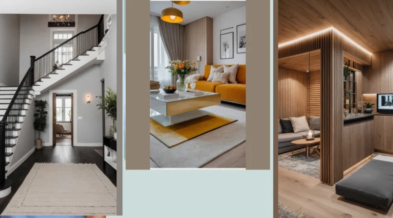 Notice that grand staircase? It’s not just for getting upstairs; it’s practically a red carpet for your daily commute, complete with fancy iron railings that look straight out of a cool movie. And don’t even get us started on that epic circular chandelier overhead – it’s less ‘light fixture’ and more ‘statement piece that probably costs more than your gaming console.’ Even the plants are doing their part, adding that fresh, lively touch that screams ‘nature, but make it fashion.’ It’s all about mixing simple comforts with cool design, making sure your home is the ultimate cozy retreat, even if you’re just hiding from chores.