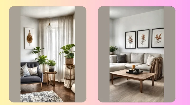 The real magic in this home decorating scene is how simple pieces make a big statement. Take that tall, leafy plant standing guard; it’s basically the room’s cool, calm bodyguard, adding instant life and a splash of green without needing a personal trainer. And check out that awesome wooden coffee table, neatly styled with candles and magazines, probably hiding a secret drawer full of junk food wrappers and misplaced remotes when guests aren’t around. Decorating is all about making your space feel like *you* live there, not just that you store your stuff there. It’s about finding those little touches, like a cozy rug or a funky piece of art, that transform a plain room into your personal chill-out zone, making it friendly and fun.