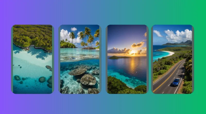 If this isn’t the definition of ‘wish you were here,’ I don’t know what is! This beautiful island just *gets* it. With water so clear you can count the rocks on the bottom without even squinting, and palm trees swaying like they’re doing a happy dance, it’s pretty much begging for a photoshoot. Forget homework or chores; I’d trade it all to be chilling on that pristine white sand, snapping pics that would make all my friends super jealous. Just imagine the golden hour selfies with those fluffy, colorful clouds!