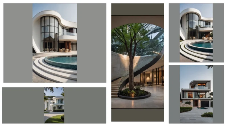 Check out this house! It looks like someone told the architects, “No boring boxes allowed!” This place totally ditched all the straight edges and went full-on wavy. It’s got these awesome curved walls and balconies that make it look super futuristic, almost like a cool spaceship landed in a fancy garden. Forget your grandma’s rectangular living room; this place is all about smooth lines and modern vibes, proving that architecture doesn’t always have to play by the rules of right angles. It’s like the building itself decided to do a graceful dance instead of just standing still.
