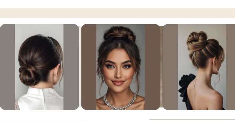 What makes this bun even cooler is how it plays off the super glam jewelry and flawless makeup. You’ve got these sparkling earrings and a necklace that probably costs more than a small car, all paired with a hairstyle that could totally be your go-to for a late-night study session. It’s the ultimate high-low fashion move for your hair, showing you can be fancy without taking yourself too seriously! So, whether you’re channeling your inner Sofia Richie for prom night or just trying to look presentable for your Zoom class without actually washing your hair (we’ve all been there), this chic bun is your secret weapon.