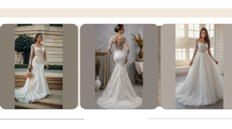 What’s more dreamy than satin? Imagine slipping into a satin gown that glides over your skin like a gentle hug from a cloud. Add sleeves into the mix, and you’ve got a recipe for pure elegance. But wait, we’re not stopping there! When it comes to fit, don’t shy away from finding the right size that brings out your best features. A dress that fits you like it was made just for you can elevate your wedding aesthetics from casual to fairy-tale chic.