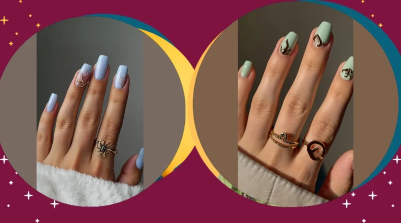 Speaking of cool, did you notice the scorpion ring? It’s like the nail art’s best friend, ready to take on the world together. They’re like a team, you know? They’re both stylish and totally rocking their own unique look. These nails would make any Scorpio proud!