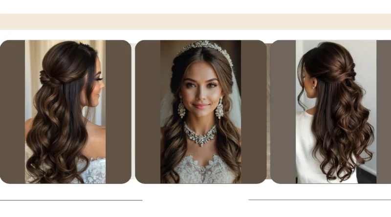 That half-up, half-down situation is basically the best of both worlds. You get the elegance of an updo without sacrificing the flowy, romantic feel of long hair. And honestly, who wouldn’t want to spend their wedding day feeling like a total hair goddess? Just try not to accidentally whip anyone with your amazing mane while cutting a rug—wedding cake and rogue strands don’t mix!