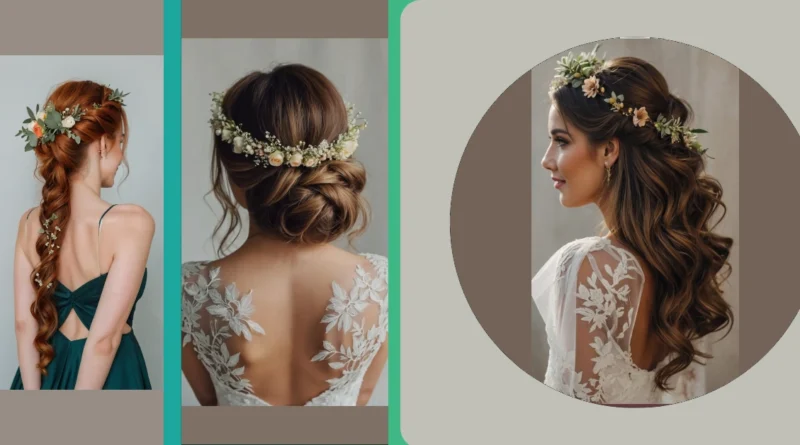 And hey, updos don’t have to be reserved for prim and proper weddings! They can be reimagined with a splash of color and charm thanks to a flower crown. Imagine your beautifully polished updo, intricately twisted, happily complemented by the vibrant blooms perched right on top! It’s all about giving that classic style an upgrade; you’ll turn every head as you walk past, leaving a whimsical trail of inspiration behind.