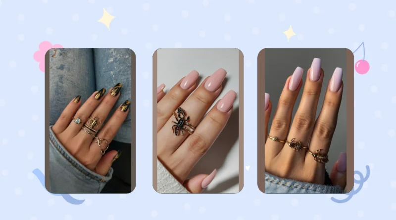 These nails are totally giving off “cool girl” vibes! The soft pink ombre makes them look super chic, like a delicate sunset. And those scorpion rings are definitely a statement piece – you’ll be turning heads everywhere you go! Who needs a fierce animal when you’ve got fierce nails, right?