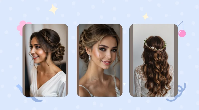 Getting ready for a wedding as a bridesmaid means looking stunning but also being ready for anything – from holding bouquets to busting out dance moves. This epic updo, with its fancy braids and neat bun, is like a secret superpower for your hair! It keeps every strand perfectly in place, so you won’t end up looking like you wrestled a tornado by the time the dessert arrives. Just think: zero flyaways ruining your selfie with the bride, and no sticky strands accidentally dipping into the appetizers while you’re trying to mingle!