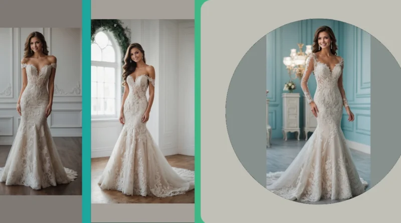 This dress is practically whispering, “I woke up like this, ready to walk down an aisle, not swim through coral reefs (unless there’s a really fancy one!).” The way it perfectly hugs every curve before dramatically flaring out? Totally giving us major mermaid vibes, making you wonder if she secretly has a sparkling tail under all that gorgeous lace, just waiting to flop playfully. And can we talk about the subtle bling? It’s not over-the-top, but just enough sparkle to catch the light, making her shimmer like sunlight dancing on ocean waves – perfect for catching every eye (especially the groom’s!).