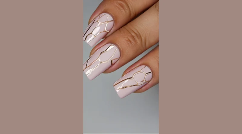 These nails are screaming “ready for vacation!” Imagine rocking these while sipping a mocktail on the beach, or showing them off at the amusement park. The light pink with the gold pattern is like a super fancy spiderweb, but way more stylish. So ditch the plain polish this spring break and get some nails that sparkle brighter than your future Instagram posts.