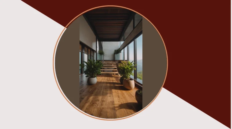 The image shows a beautiful, modern home with a wooden staircase leading up to the next level. The sleek lines of the stairs and the warm, inviting color of the wood make it feel like a stepping stone to something special. Imagine walking up these stairs, past the leafy green plants, and into your own private oasis.
