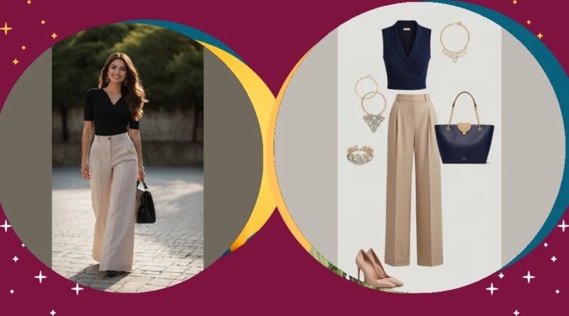 And let’s not skip the fun details that make this whole look pop! Those cool round sunglasses and that confident red lipstick make it clear that this isn’t just an outfit, it’s a whole vibe. The little clutch purse adds a touch of “I’m sophisticated but still ready for pizza,” making this wide-leg wonder perfect for anything from a casual hangout to a slightly fancier event. So if you’re tired of feeling restricted and want to rock a look that says “I woke up like this, fabulous and comfy,” then definitely give wide-leg trousers a try!