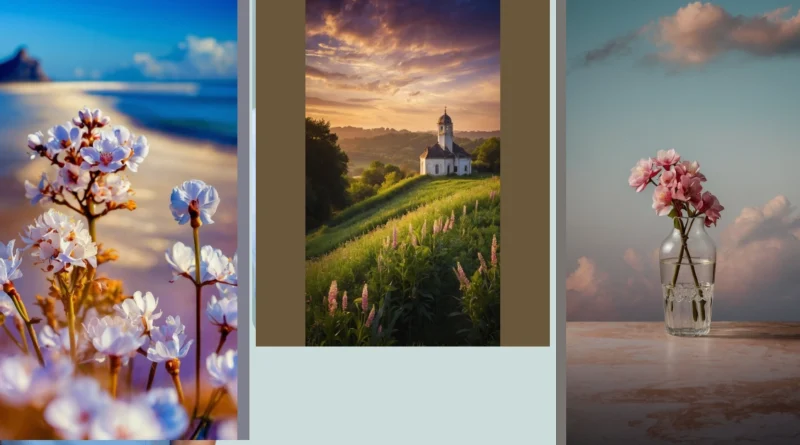 This picture is like something straight out of a fairy tale! It’s got a cute little cottage in the background, all surrounded by pretty flowers in the most gorgeous colors. You can almost imagine a princess peeking out the window or a friendly gnome hiding in the garden. It’s the kind of scene that makes you want to jump right into the picture and explore.