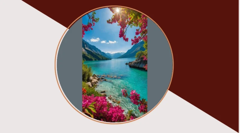 Looking at this picture, you might feel the sudden urge to trade your comfy chair and questionable cafeteria food for sparkling blue water and air that smells like flowers and adventure. That water is so clear, you could probably see your reflection *and* plot your escape route from that upcoming history test simultaneously. Seriously, those epic mountains and vibrant pink flowers are basically flashing neon signs that say “Travel Inspo Activated!”
