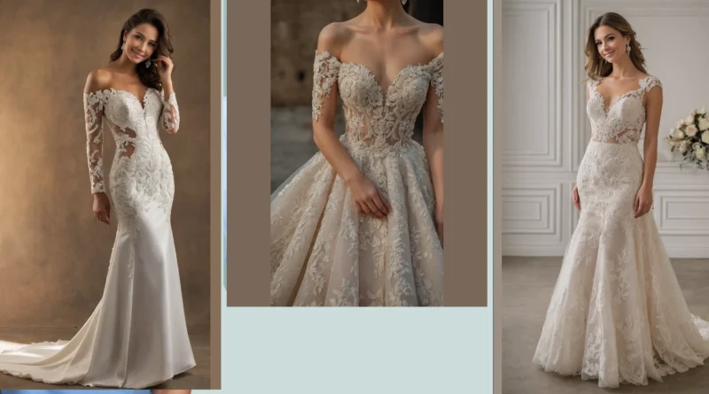 This dress is seriously stunning! Imagine yourself walking down the aisle (or maybe just a really fancy red carpet like in the picture!), feeling like a total princess in this gorgeous, lacy bridal gown. The off-the-shoulder style is super chic, and all those delicate floral patterns? It’s like a fairy tale come to life! It’s the perfect example of bridal dress aesthetic – fancy, romantic, and totally Instagram-worthy.