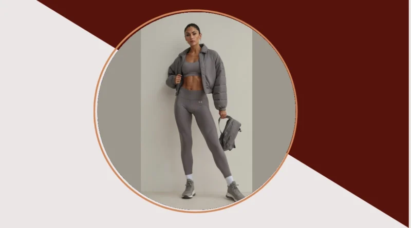 Take a peek at this super chill activewear outfit! Our model is totally rocking the “I woke up like this, but also I could probably run a marathon” vibe with her sleek grey crop top and dark green leggings. It’s like her clothes are saying, “Yes, I’m ready for anything, from a hardcore workout to an intense Netflix binge on the couch.” These active wear outfits aren’t just for sweating it out; they’re basically your comfy uniform for life, making you look effortlessly cool whether you’re crushing reps or just crushing your homework.