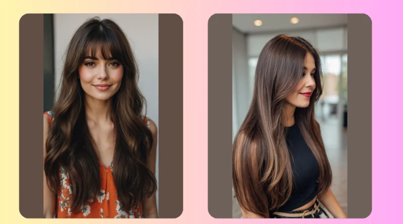 This hairstyle is totally giving major hair goals, blending those cool curtain bangs with long, flowing layers just like in the photo. It’s the kind of cut that makes you feel ready for anything, whether it’s acing a pop quiz or just looking fabulous while scrolling through your feed. These versatile bangs are like a secret superpower for adding a touch of laid-back glam, and they magically make every outfit, from sweatpants to a party dress, feel a little more put-together.
