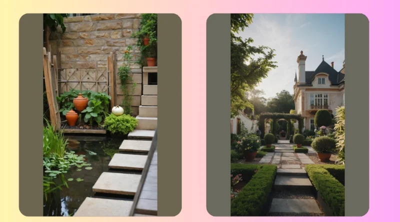 This garden looks like it’s straight out of a magazine! It’s got all the elements of a classy garden: perfectly manicured bushes, a calm pond with lily pads, and even a little stepping-stone path to wander through. You can just imagine sitting here with a good book on a sunny afternoon, listening to the birds singing and enjoying the peace and quiet.