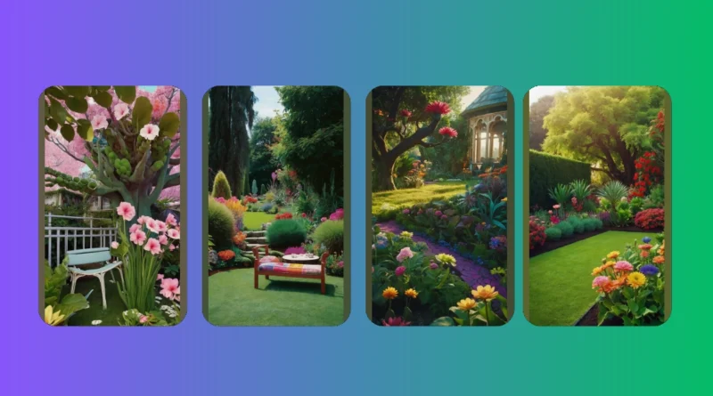 This image shows a garden that looks like it could be straight out of a fairytale! It’s got a huge, shady tree that looks like it’s seen a lot of fun times, and tons of colorful flowers blooming all over the place. You can almost imagine a little bunny hopping through the bushes or a mischievous squirrel hiding in the branches. It’s the kind of garden that makes you want to grab a picnic basket and spend the whole afternoon exploring!
