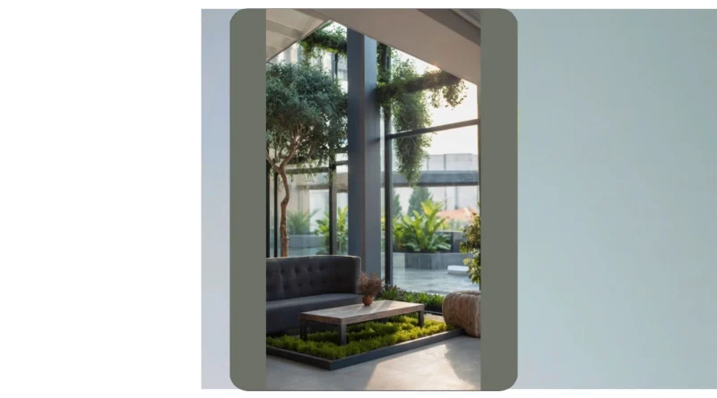 Imagine this: you’re chilling on a comfy sofa, sunlight streams through huge windows, and you’re surrounded by more plants than your grandma’s prize-winning rose bushes! That’s basically what this picture is all about. It’s like someone took a slice of the outdoors and plopped it right into a super stylish living room. There’s a mini-garden right under the coffee table – who needs a rug when you’ve got nature’s carpet? This house interior garden is the ultimate chill zone, way better than any boring old couch potato scene.