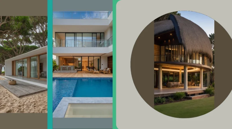 Thinking about cool beach house design? Check out this pad! It’s got everything: palm trees swaying like they’re doing a weird tropical dance, a pool that looks like a giant gemstone you could dive into, and a balcony perfect for pretending you’re the king or queen of the jungle… or at least the beach. This place is so chill, you could probably hear the ocean yawning from your bed. It’s basically a postcard came to life, minus the annoying part where you have to send it to someone.