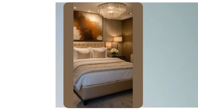 Check out this room! It’s basically saying, “Goodbye, boring bedroom; hello, five-star resort!” That bed looks so unbelievably soft, with all those fluffy pillows and that squishy blanket, you’d probably sink in and immediately forget every single homework assignment you have. And can we talk about that chandelier? It’s like a fancy crown for the ceiling, making the whole place sparkle. With the warm glow from the lamps and that cool, artsy painting, this room is definitely designed for peak chill-out vibes, making even a regular Tuesday feel like a special occasion.