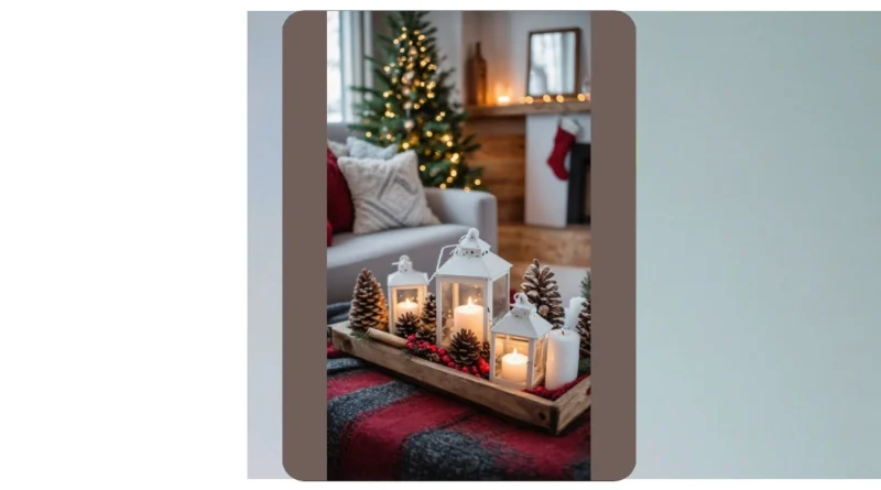 Take a peek at that awesome tray in the picture – it’s basically a masterclass in making your room look Pinterest-perfect without breaking the bank. Those lanterns with the glowing candles (battery-powered ones are super safe!) mixed with a pile of pinecones and some bright red berries? That’s your ticket to instant cozy magic. You can totally raid your backyard for cool pinecones, maybe snip some evergreen sprigs, and then arrange them on any old tray. It’s a fun, easy way to bring nature indoors and make your room smell like a holiday dream, even if your only talent is knowing where the best snacks are hidden.