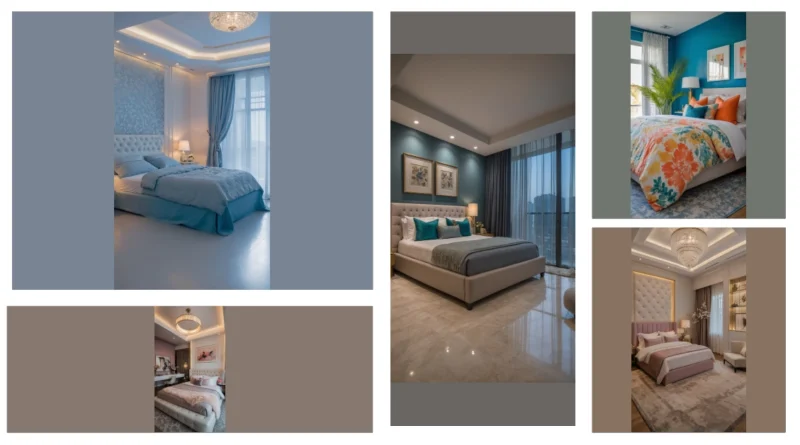 But it’s not just the walls that got the memo; everything in here screams comfort, from the plush pillows piled high on the bed (how many is too many? The limit does not exist!) to the matching duvet that looks ready for the coziest movie marathon ever. That cool, bubbly chandelier above seems to whisper secrets of relaxation, while the abstract art ties all the blues together like a perfectly curated chill-out playlist. This room is serving up major style and even bigger nap potential.