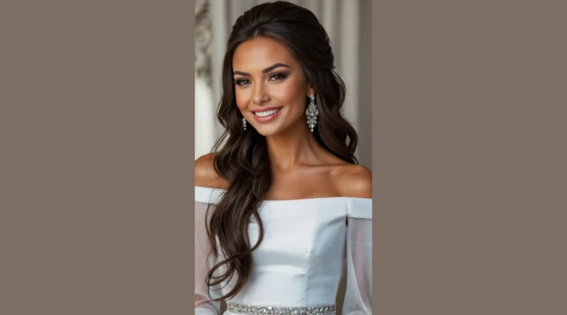Seriously, just look at those luscious waves! That dazzling hairpiece adds just the right amount of sparkle without being too over-the-top. It’s like the perfect accessory to make your hair the star of the show. And the best part? This style is super versatile. You can rock it at your wedding, prom, a fancy party, or even just a special night out with your friends. It’s all about feeling confident and beautiful – and this hairdo totally helps with that!