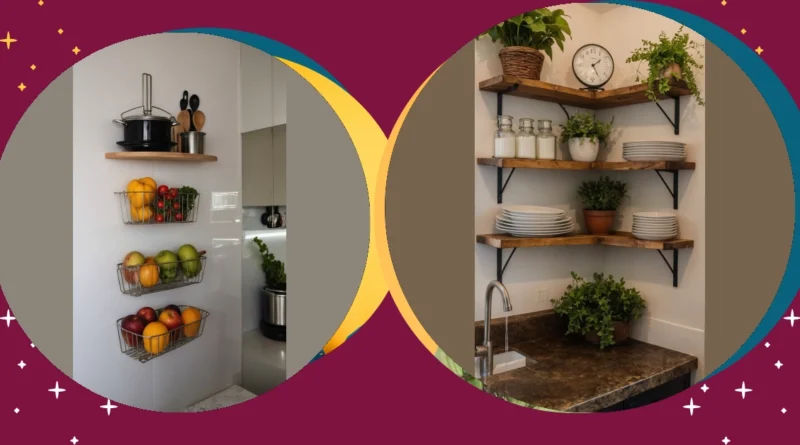 Plus, who knew walls could be so productive? This isn’t just about keeping things tidy; it’s about adding a pop of natural color to your kitchen without needing to buy a single painting. Those shiny apples and bright oranges are basically living art! And up top, that sleek wooden shelf holding the pot and cool utensils just screams ‘I’ve got my life together’ – even if you just threw a frozen pizza in the oven. It’s simple, stylish, and makes grabbing a wooden spoon feel like an organized mission, not a rummage through a junk drawer.