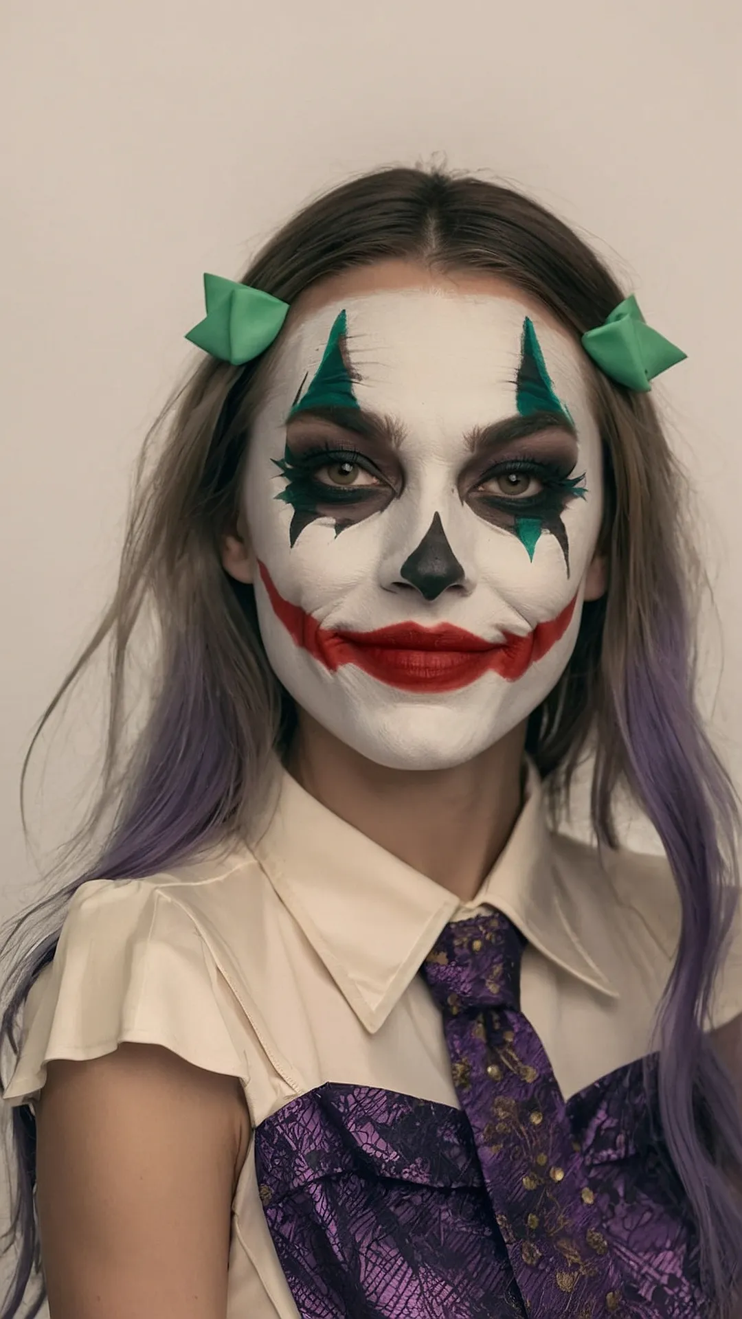Maybe she’s planning to do some magic tricks, or maybe she’s just going to stand there looking super mysterious. Either way, she’s definitely got the spooky vibes going on. And let’s be honest, who wouldn’t want to be friends with someone who can pull off a look like this? She’s like the coolest Joker ever!