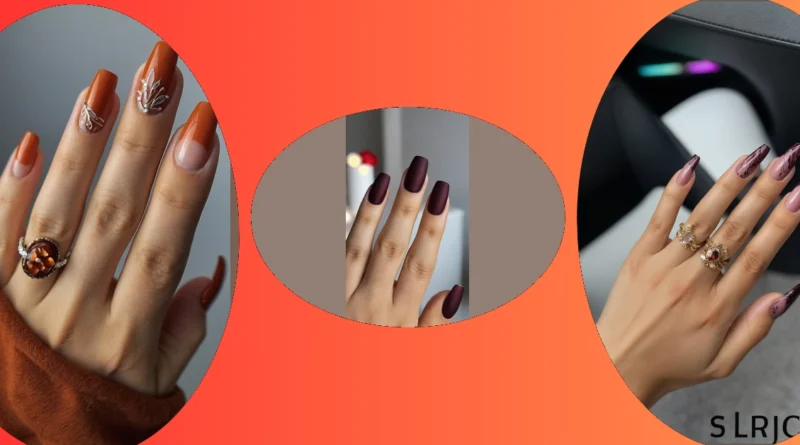 The image shows off some seriously cool fall nail colors. Imagine wearing these colors to your next pumpkin spice latte run – you’d be the most fashionable person in the coffee shop! They’re like a mix of warm apple cider and pumpkin pie on your fingertips, super festive and fun. It’s almost like your nails are saying, “Autumn, I’m ready for you!”